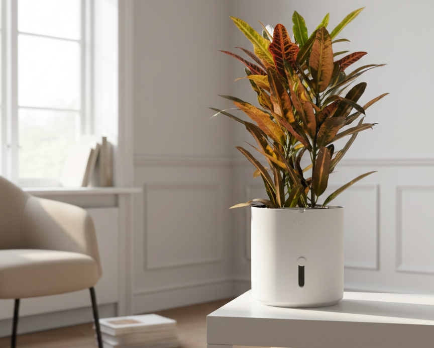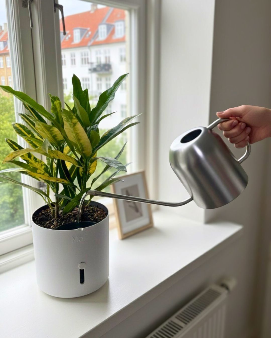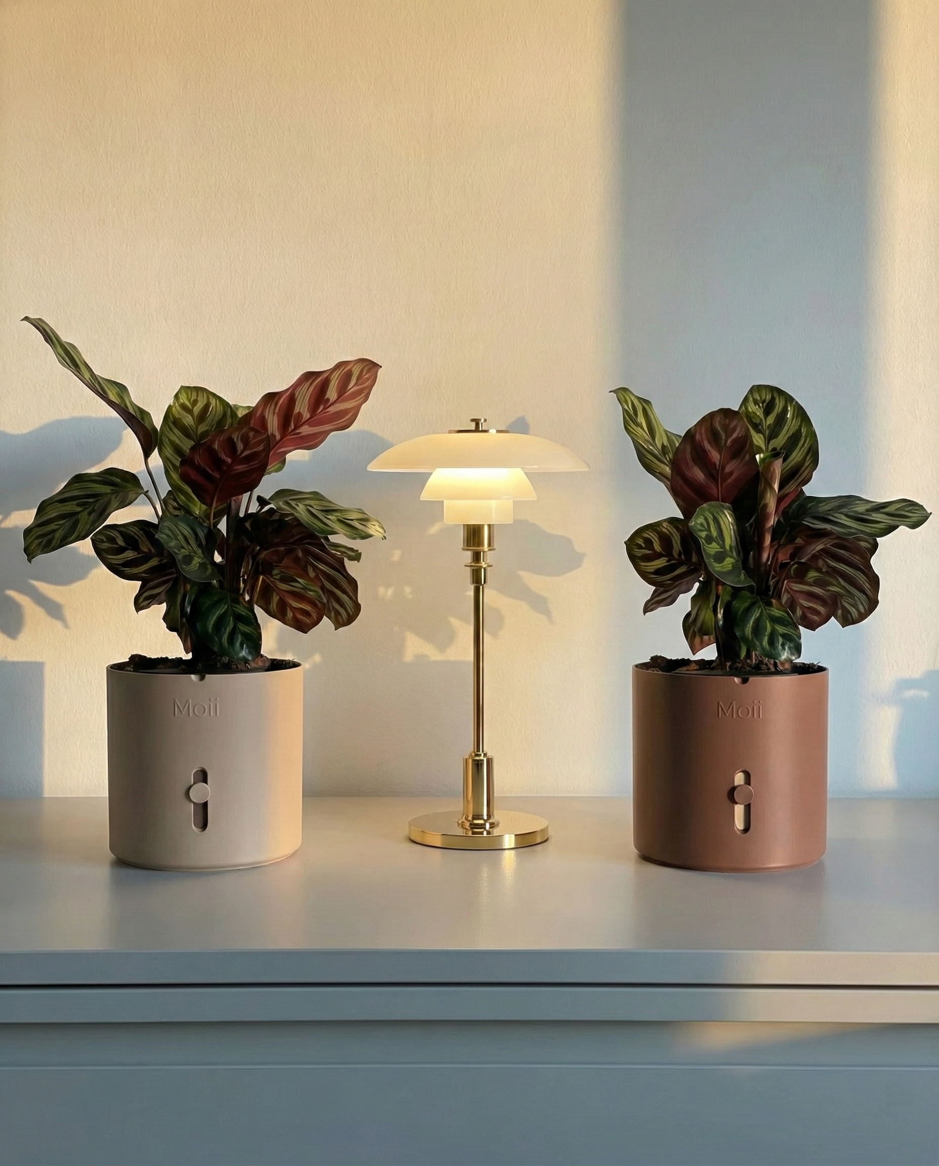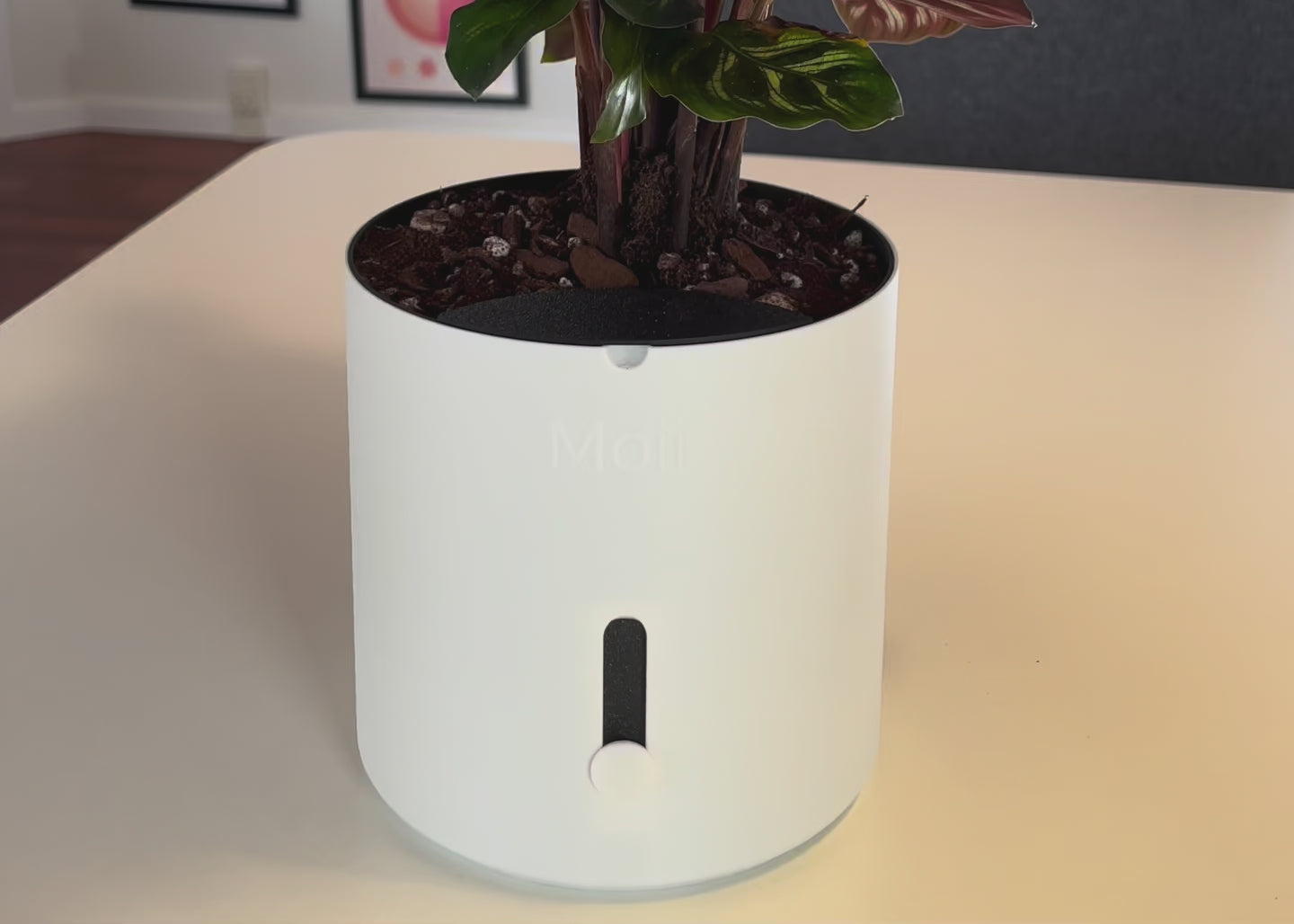 Hver del i Moii selvvandingspotte har én funktion: at gøre dit liv nemmere. Den holder på vandet, viser dig hvornår der mangler, og får planten til at trives uden du behøver at huske på den.